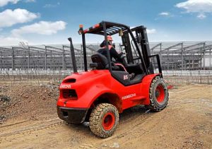 Hangcha 2.5-3.5T todo terreno montacargas de combustión interna es fuerte, compacto, y con sistema de doble tracción. Está basado en la serie XF CI montacargas, cuales tienen la opción de motores diésel CUMMINS y YANMAR. Este montacargas es reconocido mundialmente por ser superior en su rendimiento, longevidad, y por económico.Compustible: