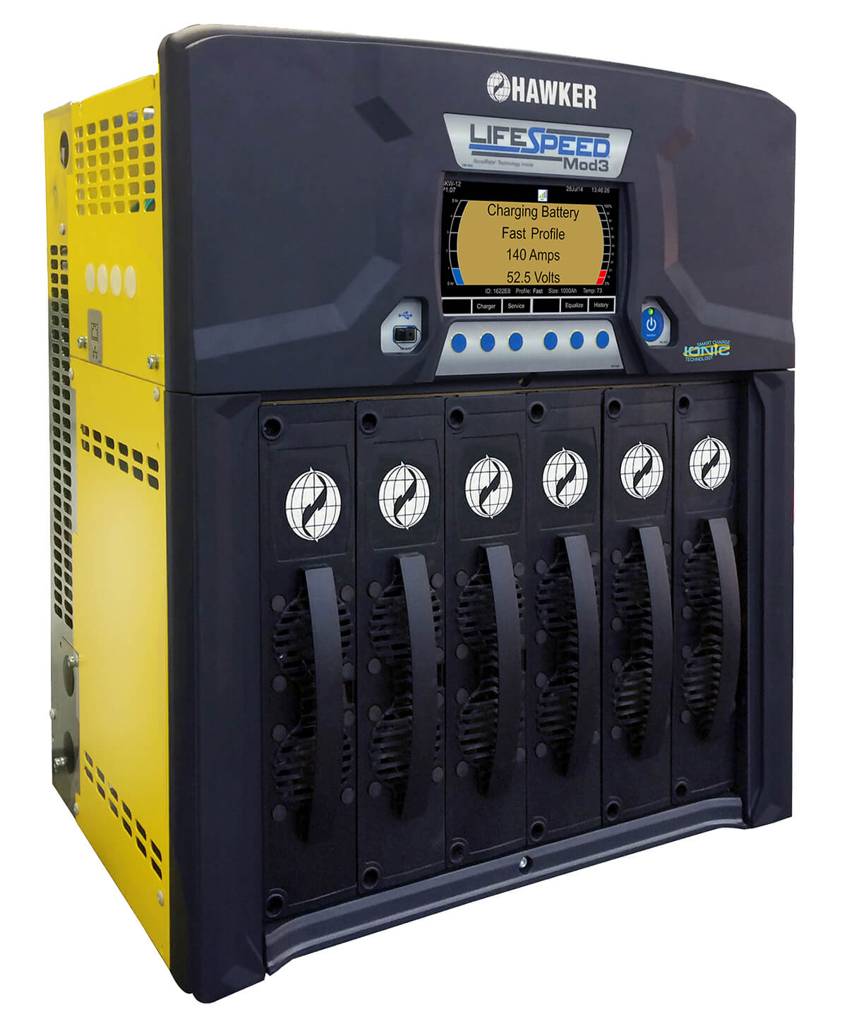 La revolución de carga modular de HAWKER® continúa con el nuevo cargador LIFESPEED® MOD3 , la última innovación del interruptor de alta frecuencia de los cargadores inteligentes de HAWKER®, el líder mundial en tecnología de carga de alta frecuencia. Los cargadores LIFESPEED® MOD3 ofrecen la flexibilidad de un cargador rápido, un cargador de oportunidad y un cargador recto. Proporcionan una carga óptima, la eficacia máxima y la potencia sin parar, a la vez que reducen los costes de carga y demandas de energía.